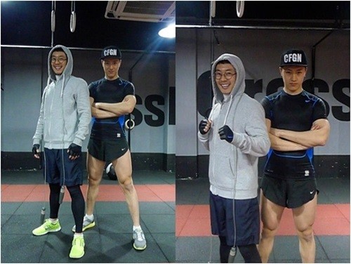 배우 이켠이 헬스장에서 지인과 함께 체력을 단련하는 사진을 공개했다.
