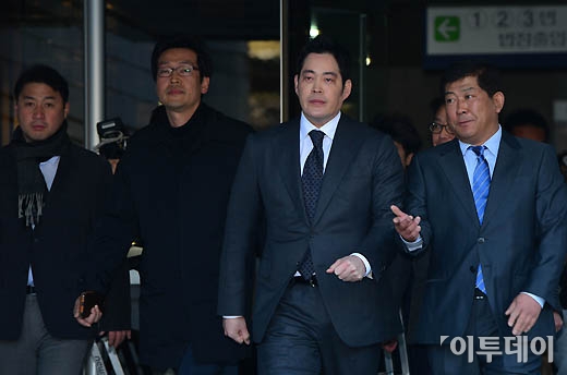 국회 국정감사와 청문회에 출석하지 않은 혐의로 기소된 정용진 신세계 부회장이 26일 서초동 서울지방법원에서 재판을 마친 후 발걸음을 옮기고 있다. 국감 불출석으로 유통가 수장들이 법정에 서게 되는 것은 극히 이례적으로, 이번 재판의 결과에 세간의 관심이 쏠리고 있다.