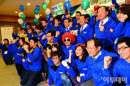 NH 영 서포터즈 3기 발대식이 26일 오후 서울 서대문구 농협중앙회 본관에서 열린 가운데 농협중앙회, 농협은행, 농협생명 임직원 및 영 서포터즈들이 기념촬영을 하고 있다. NH 영 서포터즈는 전국 대학생 40명(10개팀)으로 구성되어 있으며, 발대식을 시작으로 10월 중순까지 약 6개월간 농협 브랜드와 농업·농촌의 다원적 가치를 알리고 사회공헌 활동과 우리 농축산물 소비촉진활동, 금융 신상품 마케팅 지원 활동을 펼치게 된다. 방인권 기자 bink7119@