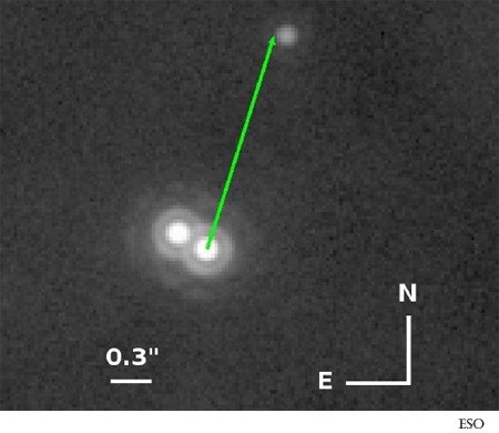어린 두 개의 별로 이루어진 '쌍성 2M0103' 주위를 도는 천체의 정체는 행성일 가능성이 점쳐지고 있다. 그렇다면 이것은 두 개의 태양을 가진 행성을 직접 촬영한 최초의 사진이 된다.