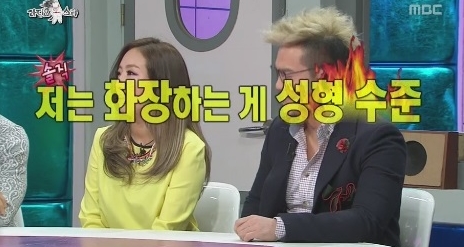 27일 방송된 MBC '황금어장-라디오스타'의 '어준간한 가수들' 편에서 정인은 "거리에 나가면 사람들이 알아보냐"는 질문에 "난 화장을 하고 안하는 게 성형 수준이다. 솔직히 인정한다"고 밝혔다.