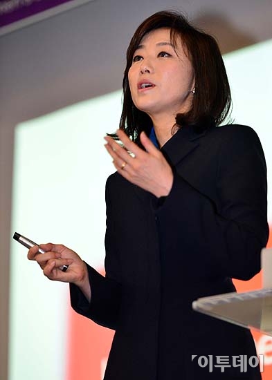 조윤선 여성가족부 장관이 28일 오전 서울 종로구 씨티은행 본점에서 열린 ‘세계여성의 날 기념 리더십 강연'에서 “첫 여성 대통령 시대, 변화의 시작”이란 주제로 강연을 하고 있다. 방인권 기자 bink119@