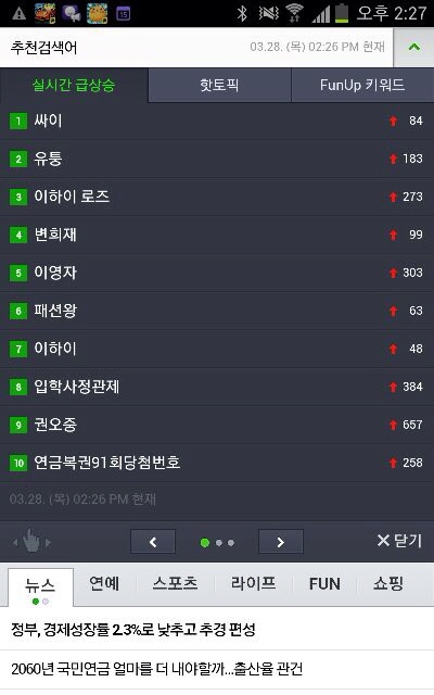 이날 오후 2시27분 싸이는 주요 포털사이트 실시간 급상승 검색어 1위를 차지했다.