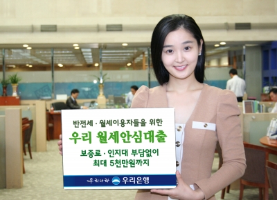 우리은행은 반전세·월세이용자들을 위한 월세전용 신용대출상품인 ‘우리 월세안심대출’을 29일 출시한다고 밝혔다.
