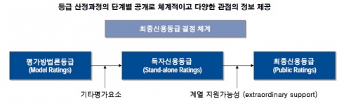 무디스, 스탠다드앤푸어스(S&P), 피치 등 국제신용평가사는 현행 신용등급과 함께 독자신용등급을 함께 공개하고 있다