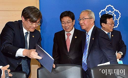 [포토]브리핑 마치고 나서는 현오석 경제부총리 및 경제관련부처 장관들
