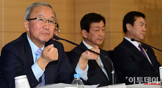 현오석 경제 부총리 겸 기획재정부 장관(왼쪽)과 경제 관련 부처 장관들이 28일 오후 서울 세종로 정부서울청사에서 박근혜 정부의 '2013년 경제정책방향‘에 대해 합동 브리핑'을 하고 있다. 방인권 기자 bink7119@