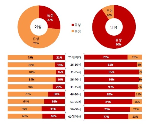 한편 지역적으로는 경상도 33%, 경기인천 29%, 서울 24% 순으로 타 지역대비 경상권의 여성회원 비중이 높은 것으로 조사됐다.