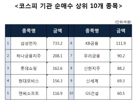 [코스피 기관 순매수 상위 10개 종목]