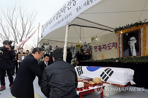 안충석 신부는 추모 예식에서 "못난 조상이 되지 말자며 조국을 위해 평생을 바친 선생이 영면할 수 있도록 억울한 죽음의 진실을 밝혀야 한다"며 "오늘 발인을 통해 정치·경제 민주화의 약속을 다짐하고 이 실천 행렬을 봉헌한다"고 말했다.