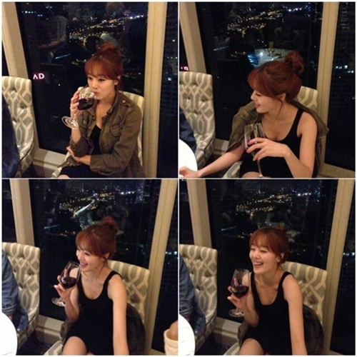 걸그룹 시크릿 한선화는 30일 자신의 트위터에 '싱가폴의 밤 샤르르'라는 글과 함께 사진을 게재했다. 한선화는 검정색 원피스를 입고 고층의 빌딩에서 와인을 들고 있는 모습이 눈길을 끈다.