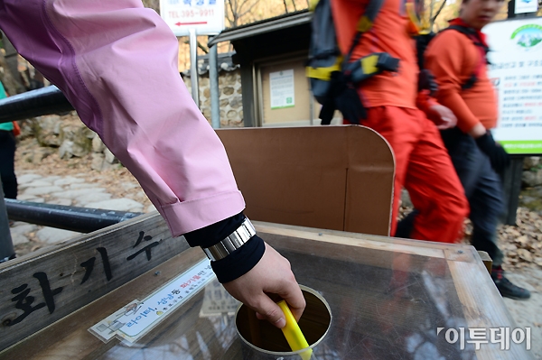 서울을 포함한 중부일부와 경상남북도 일부, 제주도산간에 건조특보가 발효 중인 31일 오후 산을 찾는 등산객들의 주의가 더욱 필요하다. 이날 오후 서울 북한산 등산로 입구에 화기수거함이 설치돼 있다. 노진환 기자 myfixer@