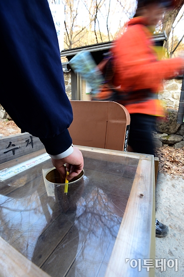 서울을 포함한 중부일부와 경상남북도 일부, 제주도산간에 건조특보가 발효 중인 31일 오후 산을 찾는 등산객들의 주의가 더욱 필요하다. 이날 오후 서울 북한산 등산로 입구에 화기수거함이 설치돼 있다. 노진환 기자 myfixer@