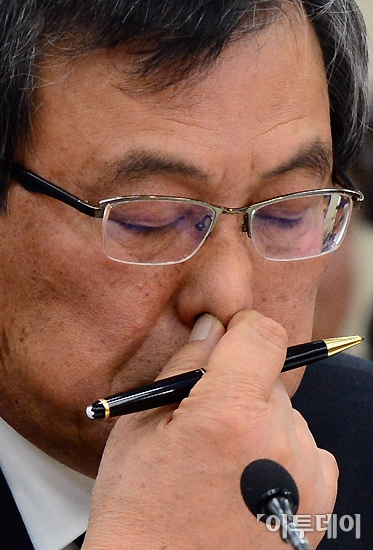 최문기 미래창조과학부 장관 후보자가 1일 오전 여의도 국회 미래창조과학방송통신위원회 전체회의에서 진행된 인사청문회에서 의원들의 질의를 들으며 얼굴을 만지고 있다. 노진환 기자 myfixer@