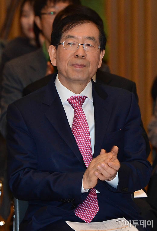 박원순 서울시장이 2일 서울시청에서 열린 '희망기업 구매증대 및 계약제도 개선 청책토론회'에 참석해 박수를 치고 있다. 양지웅 기자 yangdoo@