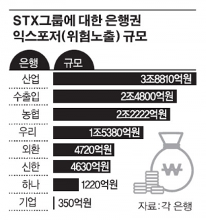 이중 주거래은행인 산업은행이 부담하는 여신규모는 4조원 안팎이다. 만일 STX그룹의 부실이 심각한 수준에 이르러 여신 재분류에서 ‘고정 이하’로 분류하면 산은은 1조원 이상의 충당금을 추가로 쌓아야 한다.