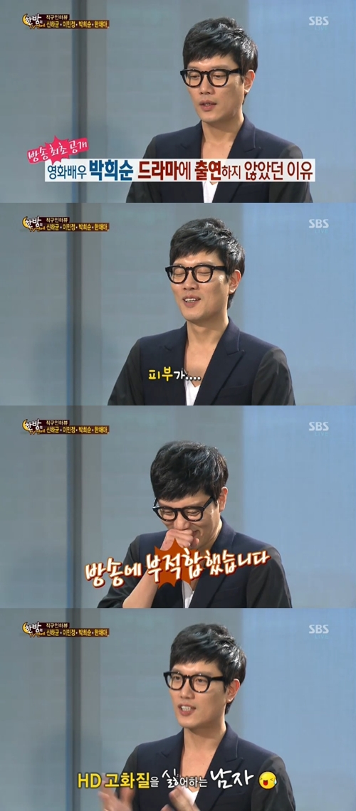 박희순은 "HD 고화질이 싫다"고 말해 웃음을 자아냈다. 이어 "요즘엔 피부과, 마사지 등 관리를 열심히 받고 있다"고 전했다.
