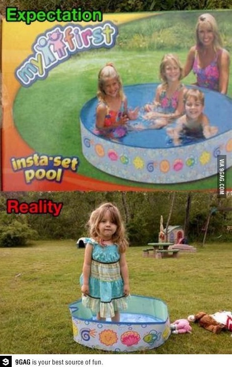공개 된 사진 속에는 즉석 미니 수영장 제품과 제품 광고 사진이 있다. 그 밑에는 실제 그 제품을 개봉한 뒤의 모습을 보여주고 있다. 특히 이 미니 수영장 제품은 광고 사진과 실제 제품 모습이 너무 달라 기대와 다른 현실로 실망감을 안겨주고 있다.