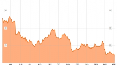 가격정책을 바꾼 이후 J.C.페니의 첫 분기 매출은 20% 감소하며 1987년 이후 최악의 성적을 기록했다. 주가 역시 존슨 CEO의 취임 이후 44% 이상 하락했다.