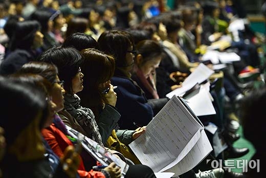 성균관대학교가 서울시 소재 주요 대학 중 처음으로 ‘2014년 단독 입시설명회’를 7일 오전 서울 송파구 잠실학생체육관에서 열었다. 이날 설명회에 참석한 학부모와 학생들이 김윤배 입학처장의 설명을 경청하고 있다. 방인권 기자 bink7119@
