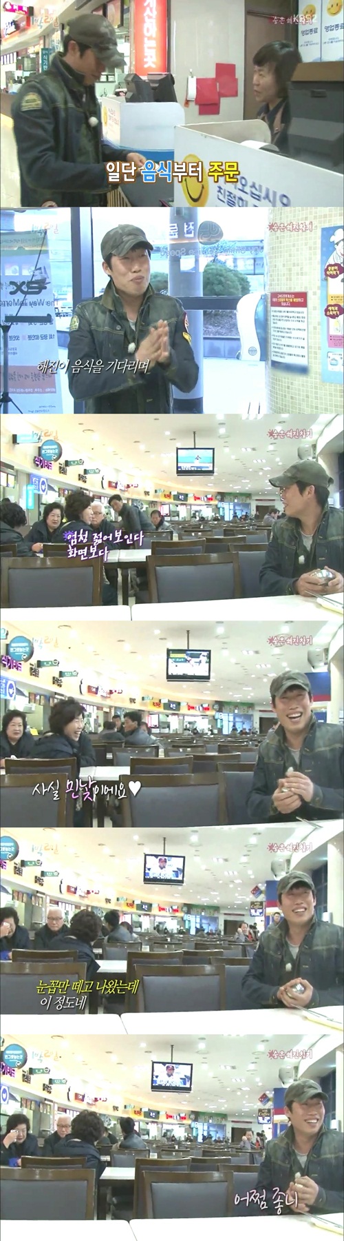 유해진은 한 휴게소에서 멤버들을 기다리게 됐는데, 한 시민이 “화면보다 엄청 젊어 보인다”며 유해진의 외모를 칭찬했다.
