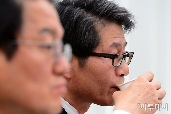 류길재 통일부 장관이 8일 오전 여의도 국회에서 열린 외교통일위원회 전체회의에 참석해 의원들의 질의에 물을 마시고 있다. 노진환 기자 myfixer@