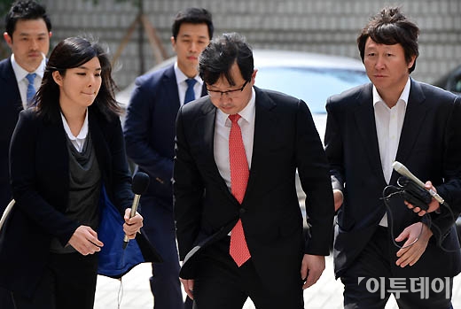 횡령과 배임 혐의 등으로 기소된 SK그룹 최태원 회장과 동생인 최재원 수석부회장에 대한 항소심 첫 공판이 8일 오후 서초구 서울중앙지방법원에서 열린 가운데 최재원 수석부회장이 출석하고 있다. 양지웅 기자 yangdoo@