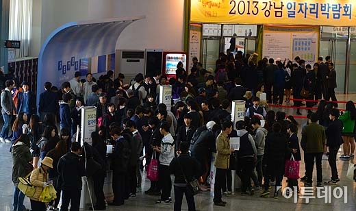 ‘2013 강남 일자리 박람회’가 9일 오전 서울 강남구 대치동 SETEC에서 열린 가운데 이른 아침부터 구직자들로 박람회가 북적이고 있다. ‘2013 강남 일자리 박람회’는 강남구청에서 주최하는 청년, 중ㆍ장년 취업의 장으로 강남구 우수ㆍ유망기업 등 100개 기업이 참가하여 다양한 컨설팅과 취업정보를 선보일 예정이다. 방인권 기자 bink7119@