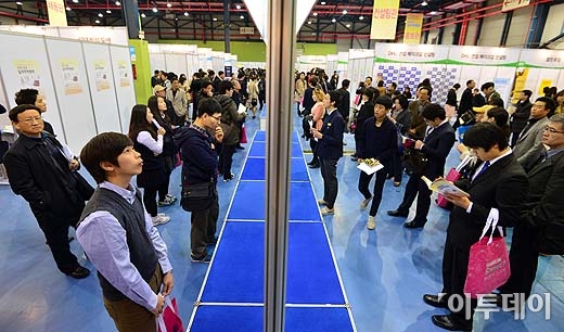 ‘2013 강남 일자리 박람회’가 9일 오전 서울 강남구 대치동 SETEC에서 열린 가운데 구직자들이 채용게시판을 보고 있다. ‘2013 강남 일자리 박람회’는 강남구청에서 주최하는 청년, 중,장년 취업의 장으로 강남구 우수, 유망기업 등 100개 기업이 참가하여 다양한 컨설팅과 취업정보를 선보일 예정이다. 방인권 기자 bink7119@