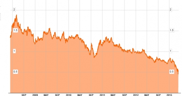 일본의 10년 만기 국채 금리는 지난 5일 사상 최저치인 0.315%까지 빠졌다. 그러나 BOJ가 채권 매입 규모를 두 배로 늘린다는 발표 이후 국채 금리 역시 두 배로 뛰었다.