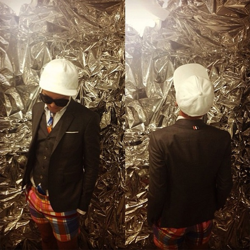 사진 속 지드래곤은 무지개를 연상케 하는 다양한 색이 교차된 체크무늬 바지를 입은 채 포즈를 취하고 있다. 또 바지와 넥타이의 컬러를 맞췄다. 이어 블랙 베스트와 재킷을 매치, 시크하면서도 세련된 느낌을 강조해 패셔니스타의 면모를 과시했다.