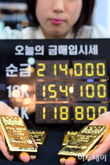 박근혜 정부의 ‘지하경제 양성화’ 조치와 대북 리스크 상승으로 인해 국제시장에서 금값이 하락함에도 불구하고 국내에서 골드바를 찾는 수요는 늘고 있다. 또한 장기적인 부동산 침체와 낮은 예금이자도 금을 찾는 이유이기도 하다. 사진은 10일 오후 서울 종로구 묘동의 한국금거래소의 모습. 노진환 기자 myfixer@