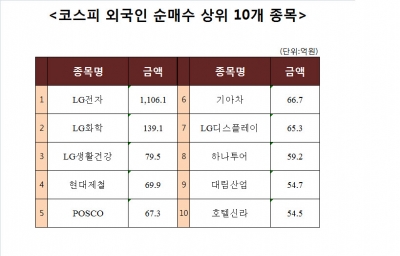 [코스피 외국인 순매수 상위 10개 종목]