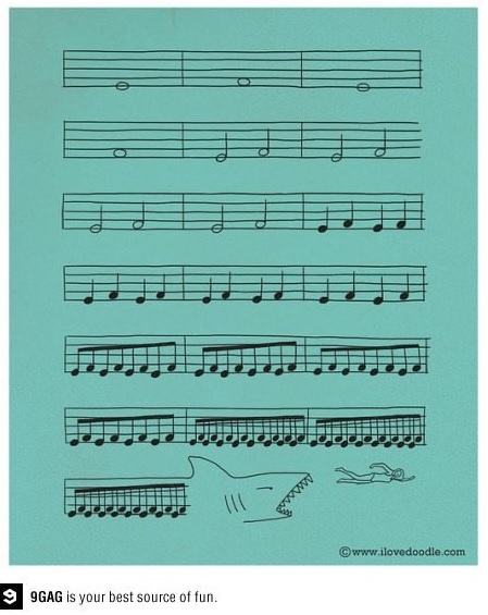 이 악보 부분의 음은 영화에서 죠스가 출몰할 때마다 나오는 음악이라 당시 이 영화를 봤던 이들이라면 이 음악을 듣고 온 몸이 소름이 돋았을 터이다. 즉 가장 무서운 부분인 것.