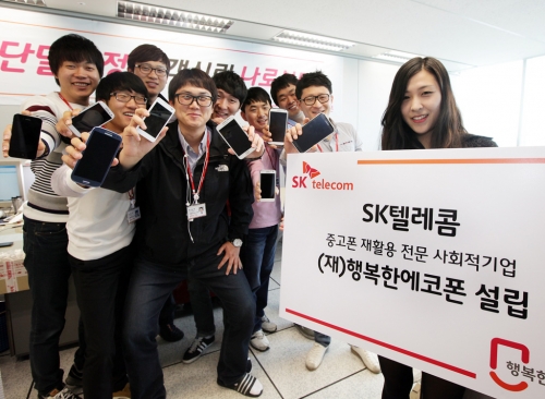 SK텔레콤은 중고 휴대폰 안심매매 사업인 ‘T에코폰’을 사회적기업으로 전환해 ‘재단법인 행복한에코폰’을 설립한다고 11일 밝혔다. ‘행복한에코폰’은 향후 중고 단말에 대한 감정평가부터 매입, 일부 가공, 개인이나 사업자 대상 재판매까지 중고 단말 안심 매매 서비스를 대행하게 된다.
