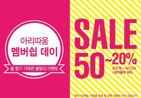 아리따움은 11일 자사 페이스북에 봄맞이 '아리따움 멤버십데이'를 진행한다고 밝혔다.