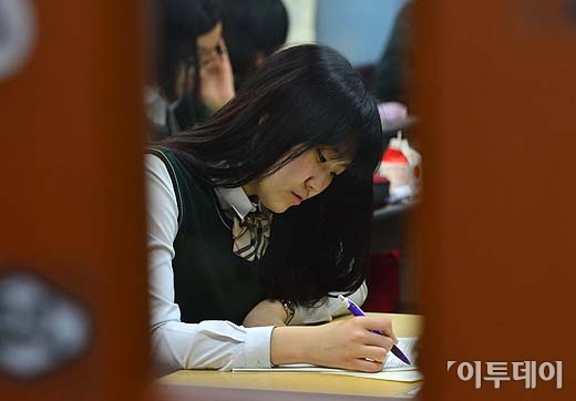 ‘2013학년도 4월 고3 전국연합학력평가’가 치러진 11일 오전 서울 종로구 배화여자고등학교에서 수험생들이 시험을 치르고 있다. 방인권 기자 bink7119@