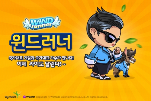 위메이드 측은 “윈드러너가 신곡 ‘젠틀맨’의 발표를 앞두고 있는 싸이와 만나 더욱 힘차게 달릴 것”이라며 “이번 제휴를 시작으로 YG엔터테인먼트와의 다양한 협업을 계획 중에 있으니 앞으로도 많은 관심과 성원 부탁 드린다”고 말했다.