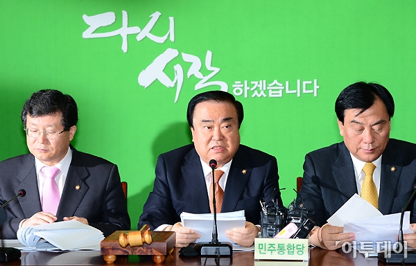 문희상 민주통합당 비상대책위원장이 12일 오전 국회 당대표실에서 열린 비상대책위원회의에 참석해 모두발언을 하고 있다. 노진환 기자 myfixer@