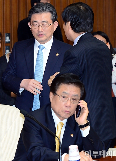 이한구 새누리당 원내대표가 16일 오전 국회에서 열린 확대원내대책회의에 참석하고 있다. 노진환 기자 myfixer@