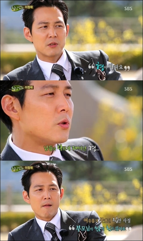 가족관계를 묻는 질문에 이정재는 "형이 변변치 않은 집안에 자폐증을 안고 태어났다"며 돈을 벌기 위해 고생한 부모님과 그런 형을 책임지고 돌봐야 했던 어린시절을 회상했다.