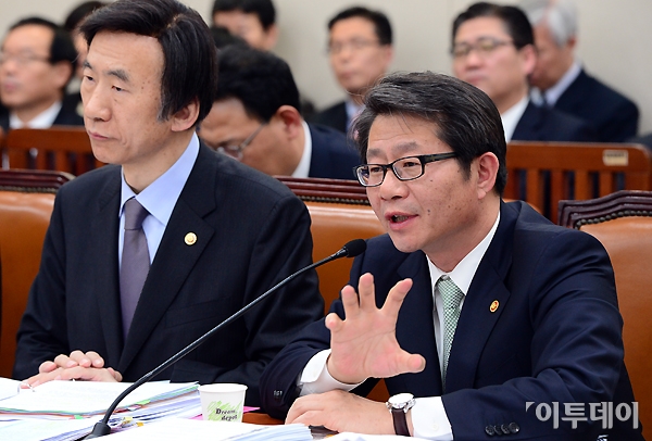 류길재 통일부 장관이 17일 오전 국회 외교통일위원회 전체회의에서 의원들의 질의에 답하고 있다. 노진환 기자 myfixer@