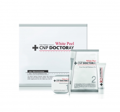 ‘CNP 닥터레이 화이트 필’은 자극 없이 부드럽게 각질을 제거해 촉촉하고 투명한 피부로 가꾸어주는 홈 케어 필링 제품이다.