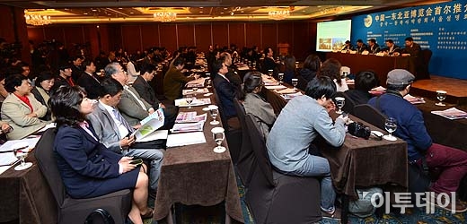 제 9회 중국-동북아박람회 서울설명회가 17일 오전 서울 중구 소공동 롯데호텔에서 열렸다. 이날 행사에 참석한 국내외 취재진과 관계자들이 청크 길림성 상무청 부청장의 설명을 경청하고 있다. 방인권 기자 bink7119@