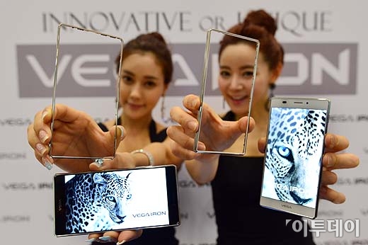 팬택이 18일 오전 서울 마포구 상암동 팬택 R&D센터에서 ‘베가 아이언(VEGA Iron, 모델명 IM-A870S/K/L)을 선보이고 있다. 베가 아이언은 Endless Metal(하나로 이어진 금속테두리)를 세계 최초로 적용해 수신 감도와 안테나의 성능을 향상시켰으며 1.7GHz 쿼드코어 칩(퀼컴 스냅드래곤 600)은 4개의 AP가 동시에 작동하여 현존 최고의 스피드를 자랑한다. 또한 세계 최초로 탑재된 5인치 High Bright 인셀 디스플레이는 빛 투과율을 94%까지 끌어올려 기존 LCD 대비 색감과 시인성, 시야각을 획기적으로 향상시킨 것이 특징이다. 방인권 기자 bink7119@