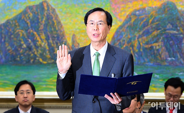 노대래 공정거래위원장 후보자가 18일 오전 국회 정무위원회 전체회의에서 진행된 인사청문회에 참석해 선서를 하고 있다. 노진환 기자 myfixer@
