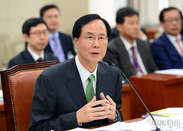 노대래 공정거래위원장 후보자가 18일 오전 국회 정무위원회 전체회의에서 진행된 인사청문회에 참석해 의원들의 질의에 답하고 있다. 노진환 기자 myfixer@