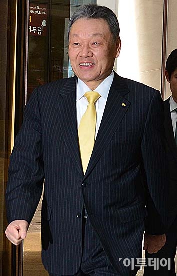 어윤대 KB금융지주 회장이 19일 오전 서울 중구 KB금융지주 명동본사에서 열린 임시이사회에 참석하고 있다.