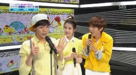 21일 오후 생방송으로 진행된 SBS ‘인기가요’에서는 MC를 맡은 아이유·이현우·황광희가 노란색 옷으로 맞춰 입고 풋풋한 모습으로 등장했다.