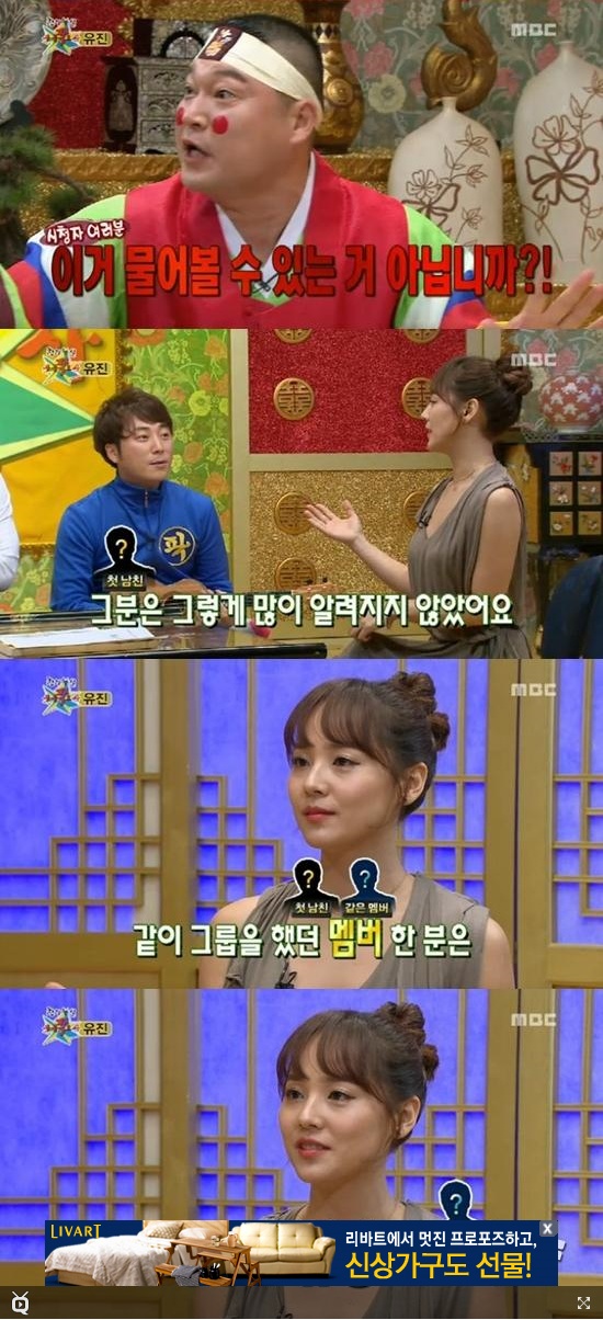 25일 방송된 MBC '황금어장-무릎팍도사'에 1세대 걸그룹 S.E.S 멤버이자 배우로 활동 중인 유진이 출연해 하하와 같은 그룹 멤버가 첫 사랑이었다고 밝혔다.